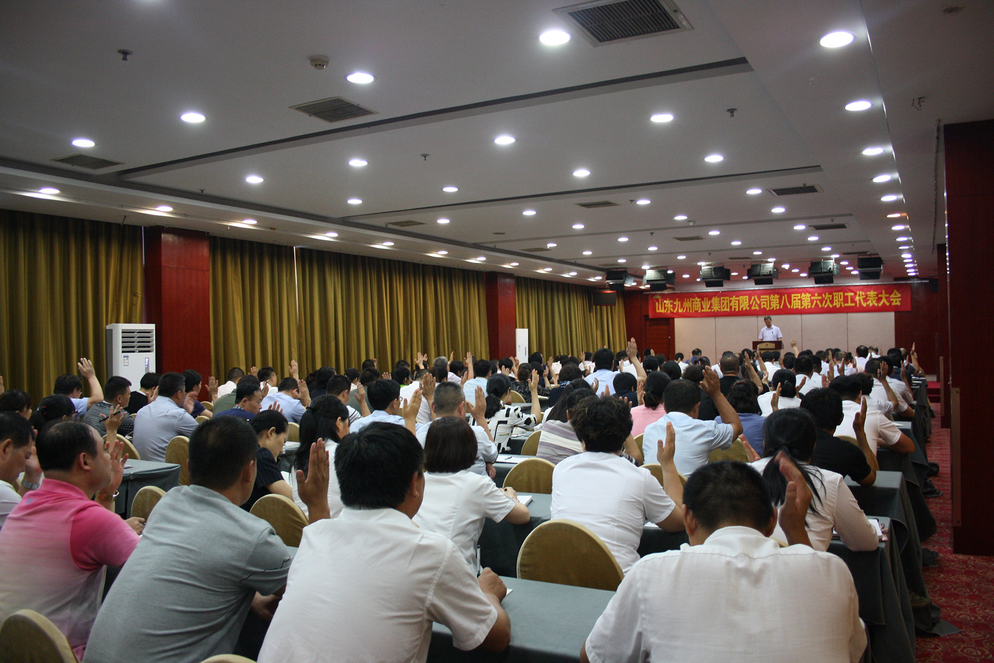 7月23日,山東九州商業(yè)集團(tuán)有限公司第八屆第六次職工代表大會(huì)在臨沂賓館召開(kāi),來(lái)自各單位的128位職工代表參加會(huì)議,集團(tuán)工會(huì)主席劉延?xùn)|主持會(huì)議。 會(huì)上,集團(tuán)董事長(zhǎng)兼總經(jīng)理?xiàng)钣罇|向各位職工代表通報(bào)了集團(tuán)上半年各單位、各經(jīng)營(yíng)部位主要經(jīng)營(yíng)指標(biāo)完成情況、費(fèi)用開(kāi)支情況、基建投資情況和招待費(fèi)使用情況,并對(duì)各單位和經(jīng)營(yíng)部位的經(jīng)營(yíng)管理工作進(jìn)行了分析和點(diǎn)評(píng)。楊永東指出,企業(yè)的發(fā)展要堅(jiān)持以提高經(jīng)濟(jì)效益為中心,圍繞經(jīng)營(yíng)發(fā)展開(kāi)展各項(xiàng)工作,各單位要認(rèn)清企業(yè)發(fā)展的內(nèi)外經(jīng)營(yíng)環(huán)境,正視企業(yè)發(fā)展存在的問(wèn)題和不足,堅(jiān)定信心,努力破除阻礙經(jīng)營(yíng)發(fā)展的不利因素,促進(jìn)經(jīng)濟(jì)效益不斷提升。 會(huì)上,全體職工舉手表決通過(guò)了《工資集體協(xié)商協(xié)議》;投票通過(guò)了《管理人員行為守則》《培訓(xùn)費(fèi)報(bào)銷(xiāo)管理規(guī)定》《員工退休手續(xù)辦理流程》《培訓(xùn)管理制度》《員工退休返聘管理標(biāo)準(zhǔn)》《駐外交通補(bǔ)貼管理辦法》《資產(chǎn)管理標(biāo)準(zhǔn)》《工程項(xiàng)目建設(shè)周期管理辦法》《電梯設(shè)備交接驗(yàn)收指引》《建設(shè)項(xiàng)目交接驗(yàn)收流程指引》《評(píng)先樹(shù)優(yōu)管理規(guī)定》《九州集團(tuán)電商平臺(tái)運(yùn)營(yíng)流程》12個(gè)標(biāo)準(zhǔn)制度。 會(huì)議要求全體職工代表要立足自身,尋求自我提升,努力做合格的職工代表,充分發(fā)揮橋梁紐帶作用,同時(shí)要牢記職責(zé)和使命,充分調(diào)動(dòng)員工工作熱情,發(fā)揮員工的積極性和創(chuàng)造性,團(tuán)結(jié)全體員工為全面完成集團(tuán)2018年度工作目標(biāo)貢獻(xiàn)聰明才智。(集團(tuán)辦公室 劉傳芳)