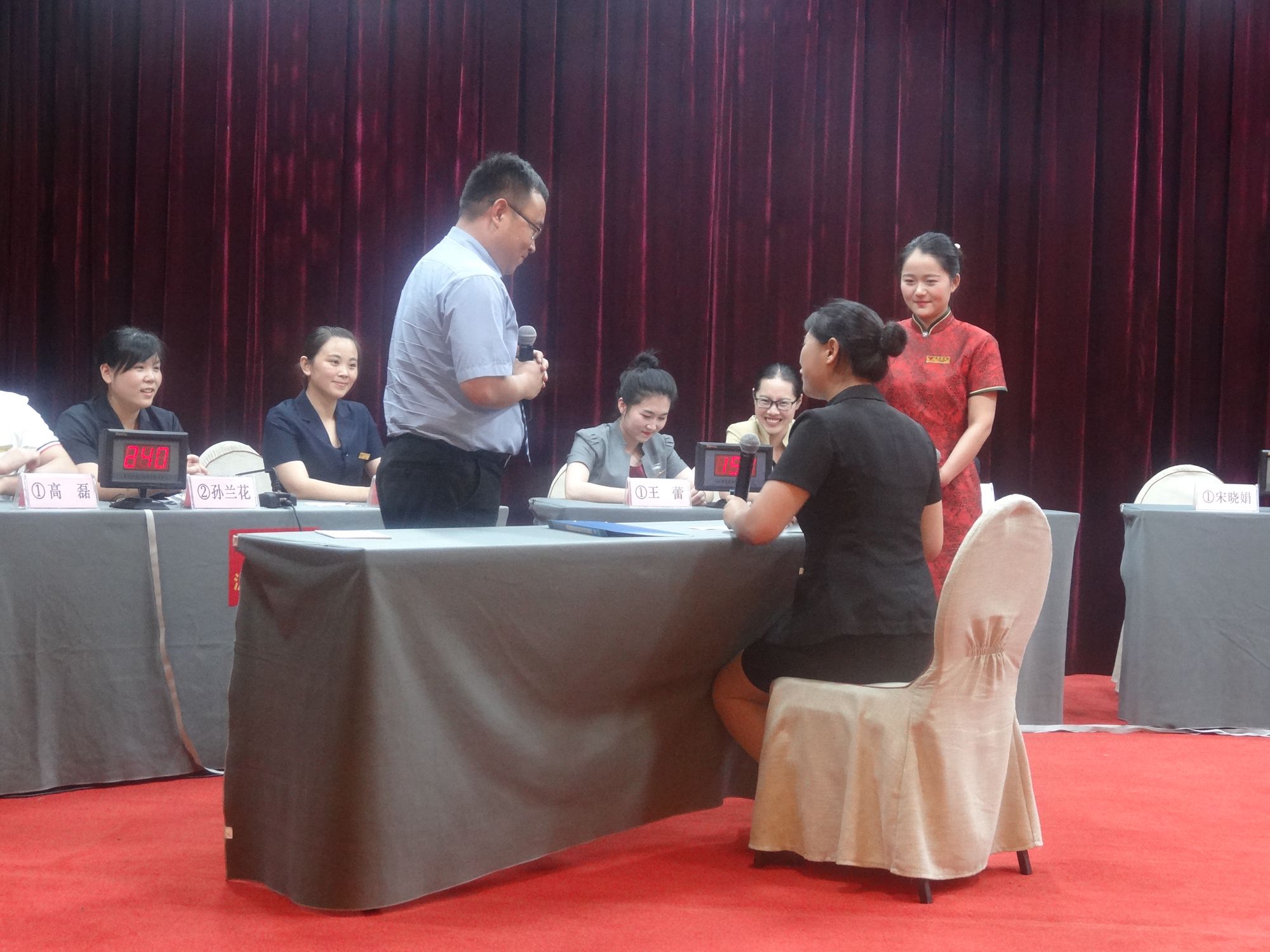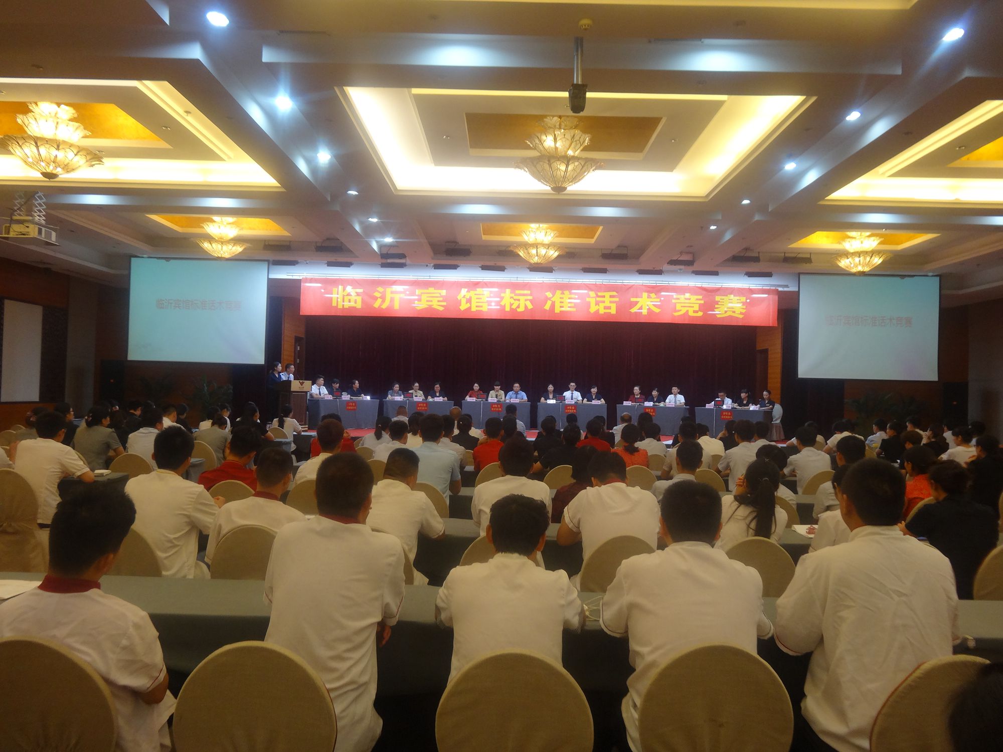 7月31日下午,臨沂賓館標(biāo)準(zhǔn)話術(shù)競賽在沂蒙路店第一會議室成功舉行。經(jīng)過激烈的角逐,最終沂蒙路店1號代表隊(duì)獲得冠軍,開發(fā)區(qū)店1號代表隊(duì)、沂蒙路店2號代表隊(duì)分獲二三名。 本次比賽共分為必答題、搶答題、情景模擬三個部分,每個分店派出兩隊(duì)參賽選手,每隊(duì)三人。選手通過搶答器進(jìn)行作答,并顯示實(shí)時得分。情景模擬環(huán)節(jié),由不同小組成員分飾顧客和員工,通過員工對突發(fā)情況的處理由評委組對其進(jìn)行打分。 標(biāo)準(zhǔn)話術(shù)在酒店對客服務(wù)中尤為重要,本次標(biāo)準(zhǔn)話術(shù)競賽選取餐飲、客房、會議等酒店三大主要產(chǎn)品在服務(wù)過程中的服務(wù)用語為題目,制定在各種場景下的標(biāo)準(zhǔn)服務(wù)話術(shù),讓全體員工都能熟練掌握標(biāo)準(zhǔn)服務(wù)用語,并通過情景模擬,展示在各種突發(fā)情況下的處理方式,引發(fā)大家的思考,并應(yīng)用到實(shí)際工作中。 本次標(biāo)準(zhǔn)話術(shù)競賽的成功舉辦,有效提高了員工在對客服務(wù)過程中使用標(biāo)準(zhǔn)話術(shù)的意識,對于臨沂賓館標(biāo)準(zhǔn)話術(shù)體系的建立有著重要的意義,各部門也將以此次活動為契機(jī),加強(qiáng)對標(biāo)準(zhǔn)話術(shù)的培訓(xùn)和應(yīng)用,并在實(shí)際工作中不斷檢驗(yàn)和完善,努力夯實(shí)服務(wù)基礎(chǔ),不斷提高服務(wù)質(zhì)量。(臨沂賓館辦公室 王本強(qiáng))