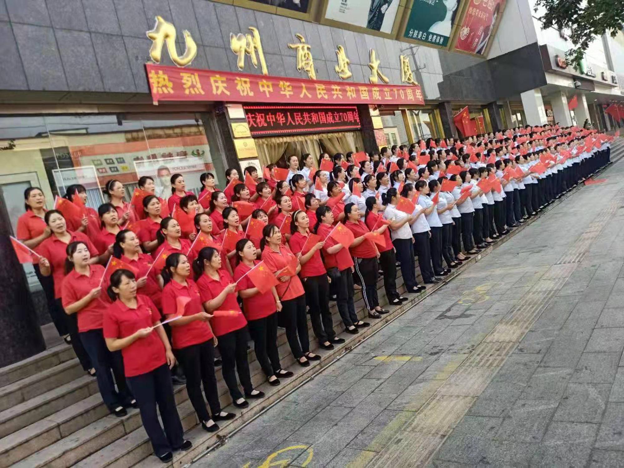 禮樂(lè)光輝盛,山河氣象新。躬逢新時(shí)代,頌歌獻(xiàn)祖國(guó)。 10月1日上午,九州商業(yè)大廈沂水區(qū)域門(mén)店分別在各店門(mén)前廣場(chǎng)舉行了慶國(guó)慶合唱活動(dòng)。先后合唱了《我和我的祖國(guó)》、《九州集團(tuán)之歌》等歌曲。 同唱愛(ài)國(guó)歌,共筑九州夢(mèng)。歌聲唱出了九州人對(duì)祖國(guó)母親的無(wú)限熱愛(ài)和美好祝福,唱出了九州人團(tuán)結(jié)奮進(jìn)、勇往直前的豪氣。這就是在世界東方生機(jī)盎然的中國(guó),這就是在紅色沂蒙大地上蒸蒸日上的九州。(文圖/黃明濤)