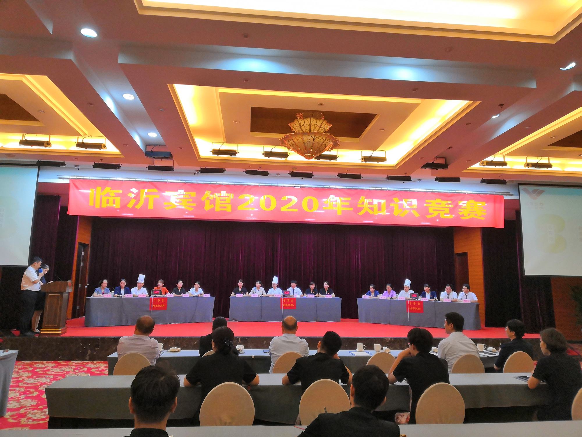 7月31日下午,臨沂賓館2020年知識競賽在沂蒙路店貴賓樓第一會(huì)議室舉行,各分店組成的三支代表隊(duì)參賽。