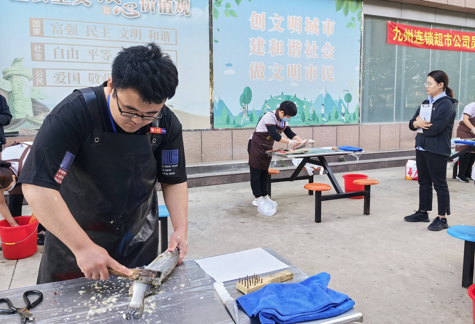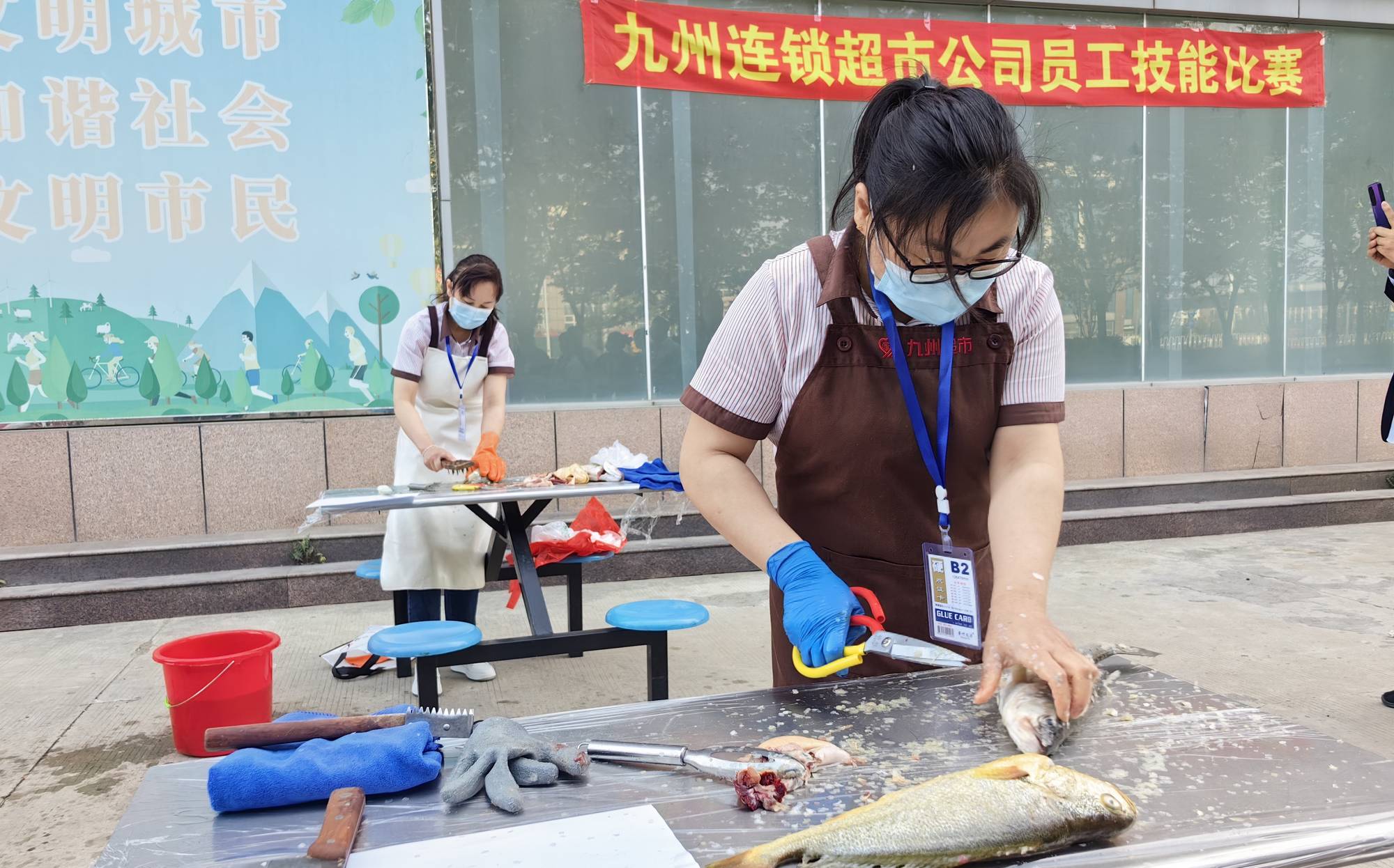 5月17日上午,超市公司在配送中心舉辦了魚宰殺技能比賽,超市公司各門店共計(jì)31名員工參加。比賽過程中,選手根據(jù)比賽要求對分配的淡水活魚和冰鮮海魚進(jìn)行宰殺和清理,要求操作流程規(guī)范、臺面衛(wèi)生整潔、商品賣相符合要求,考驗(yàn)了選手靈活敏捷的處理能力和操作的規(guī)范性。經(jīng)過綜合評比,王平莊店李懷梅獲得第一名,月亮灣店劉曉飛獲得第二名,紅旗路店顏丙衛(wèi)獲得第三名。