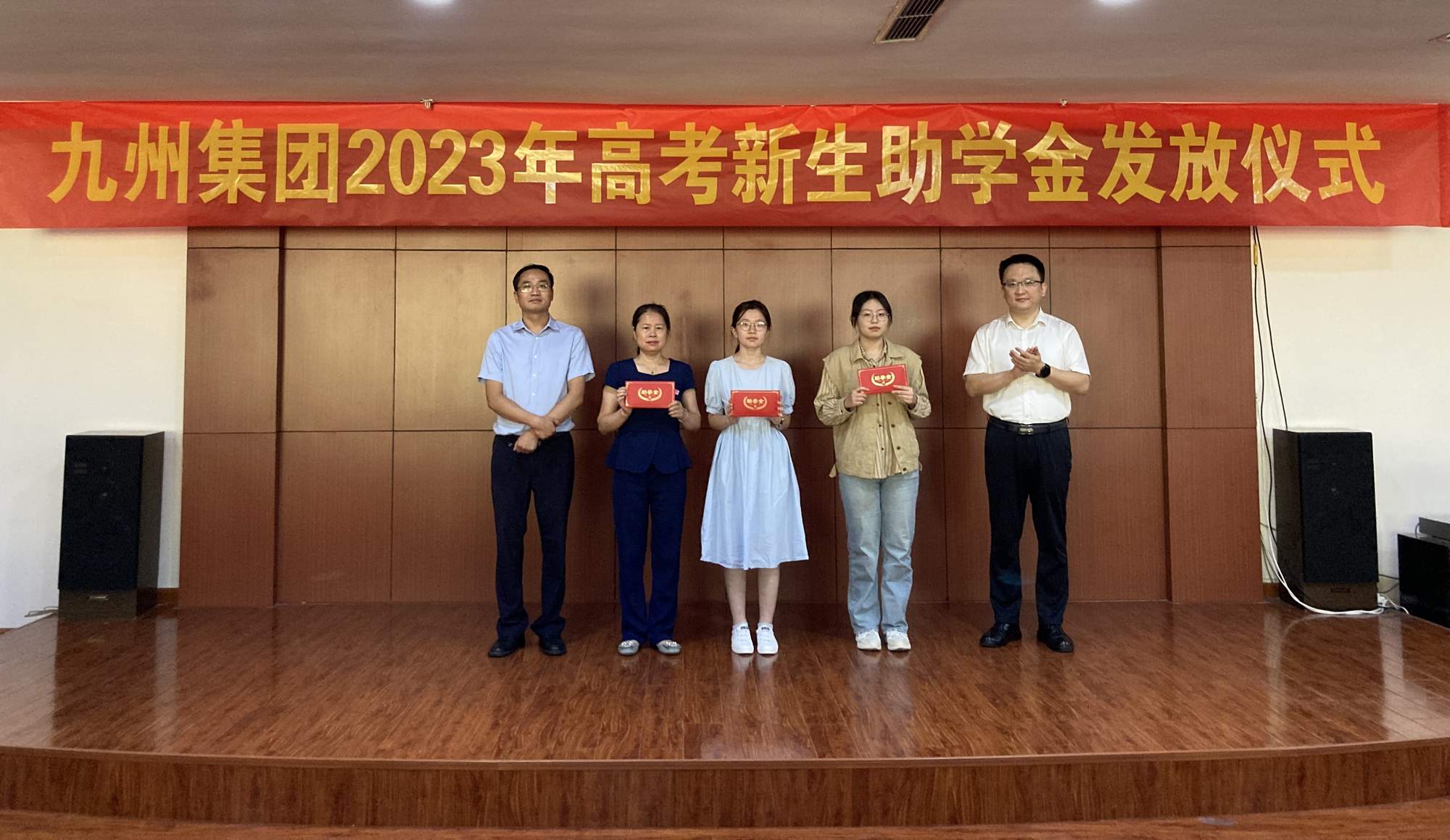 會上,為升入大學的職工子女頒發(fā)九州集團2023年高考助學金。本年度,集團共為91名升入大學的職工子女發(fā)放高考助學金共計23.5萬元。