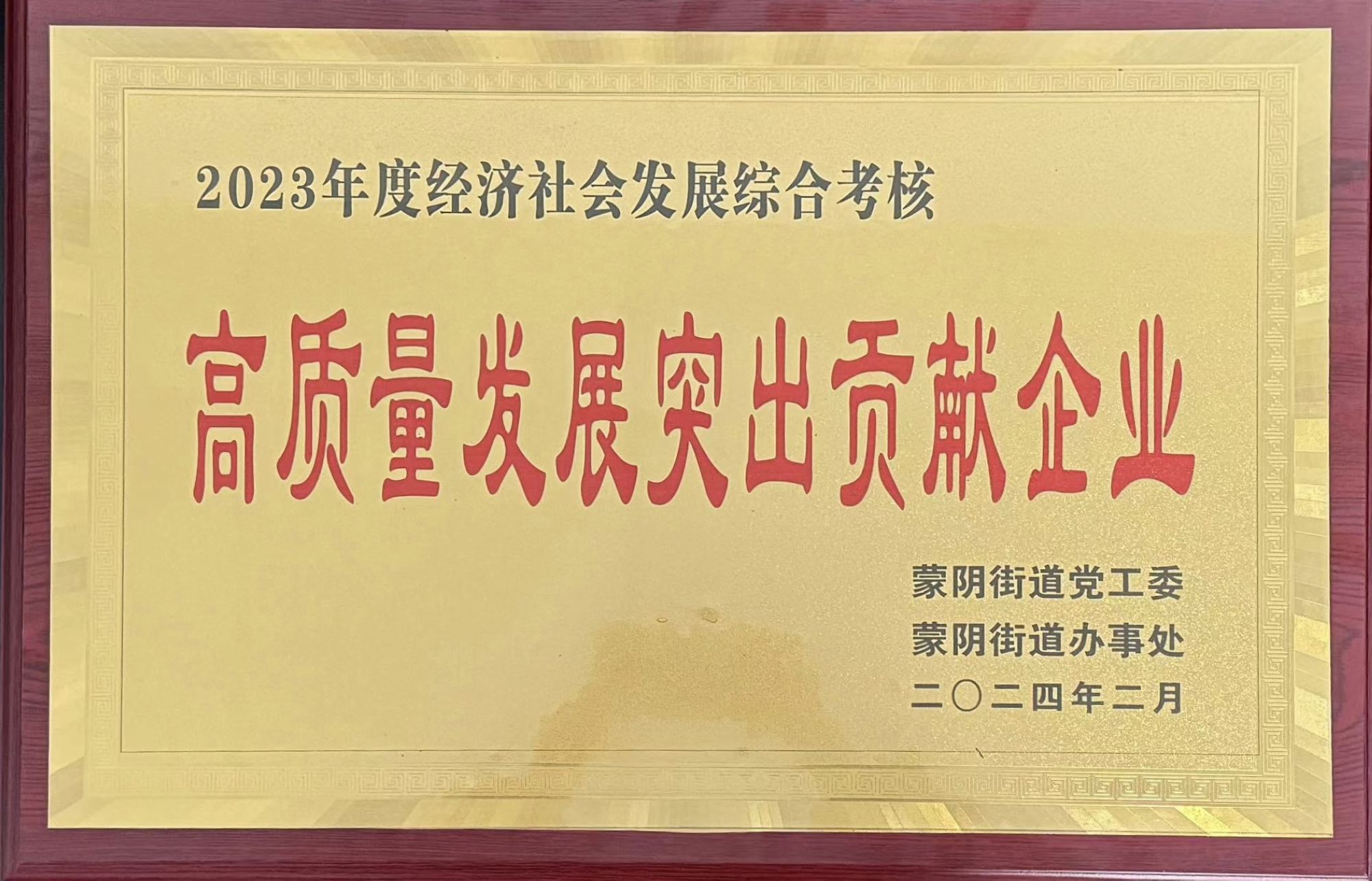 近日,蒙陰縣蒙陰街道召開2023年度高質(zhì)量發(fā)展總結(jié)表彰暨生態(tài)工業(yè)強(qiáng)鎮(zhèn)大會,會上宣讀了《關(guān)于表揚(yáng)2023年度重點(diǎn)工作先進(jìn)集體和先進(jìn)個人的決定》,九州商業(yè)大廈蒙陰店榮獲蒙陰街道“2023年度經(jīng)濟(jì)社會發(fā)展綜合考核高質(zhì)量發(fā)展突出貢獻(xiàn)企業(yè)”