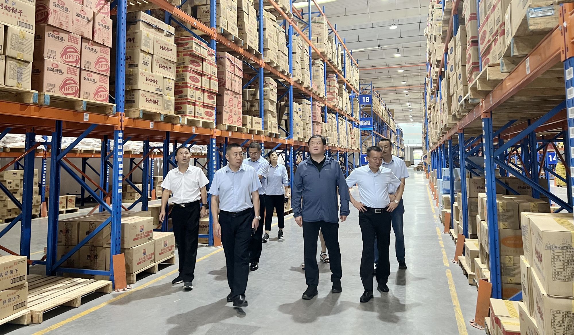 8月27日下午,省商務(wù)廳消費促進處二級調(diào)研員王春報等領(lǐng)導(dǎo)一行到九州集團配送中心巡查應(yīng)急物資儲備情況,超市公司總經(jīng)理楊治全、副總經(jīng)理楊永強陪同。