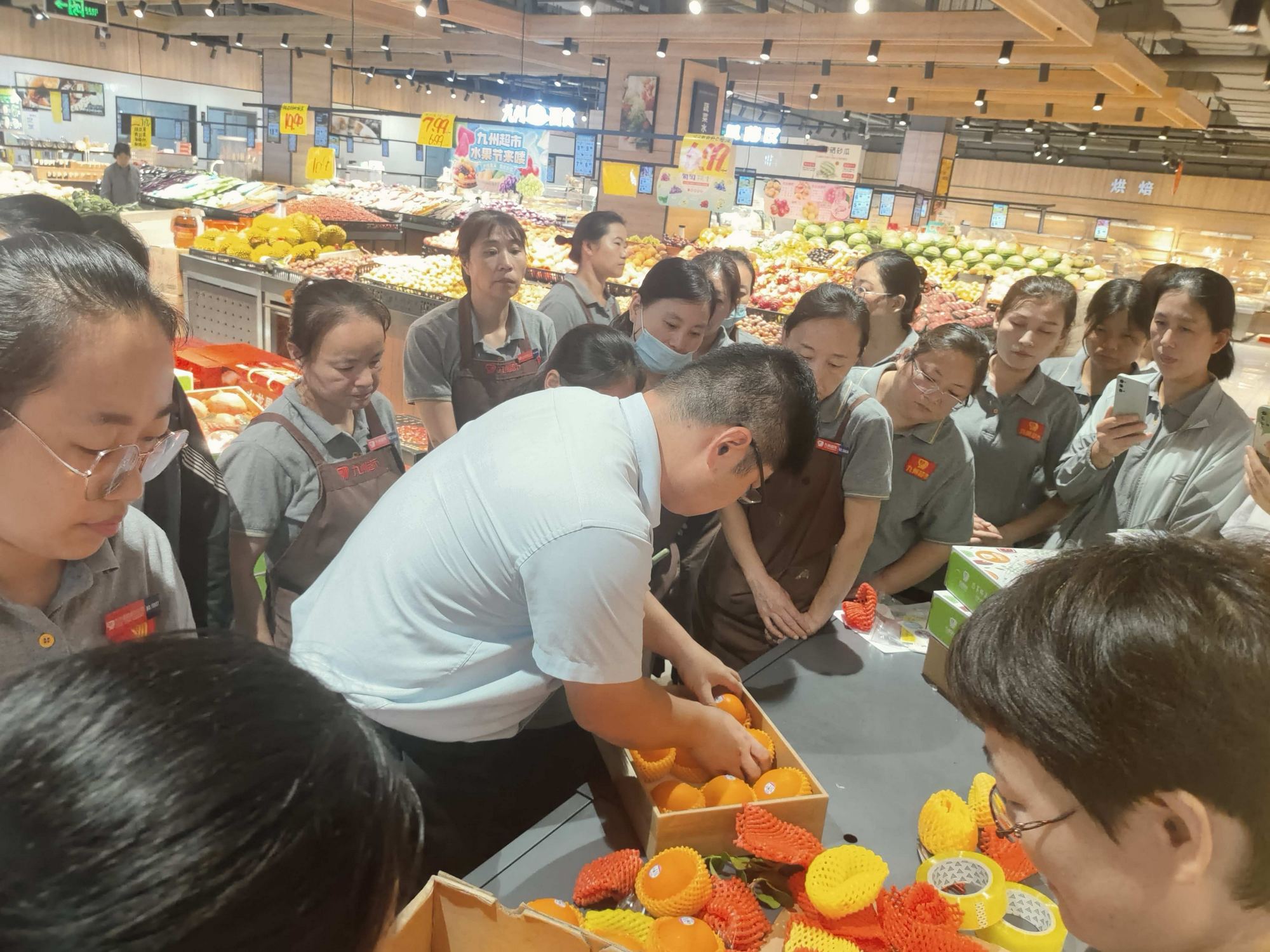隨著中秋佳節(jié)的日益臨近,為豐富各店生鮮禮盒種類,提升禮盒陳列效果,滿足廣大顧客對節(jié)日性商品的需求,為顧客提供更多的選擇和便利。9月3日-4日,超市公司開展了生鮮禮盒包裝陳列培訓,超市公司及九州大廈近50家門店生鮮員工參加培訓。