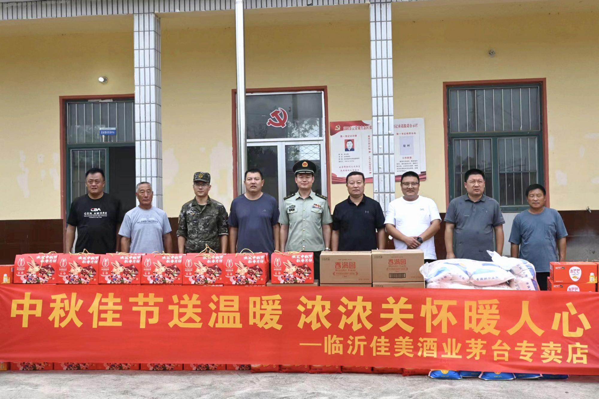 9月5日,超市公司金雀山茅臺(tái)專賣店志愿者們攜手臨沂武警支隊(duì)來(lái)到蒙陰縣張家樓村,為困難村民送去中秋節(jié)禮。慰問(wèn)過(guò)程中,志愿者們與村領(lǐng)導(dǎo)了解困難村民情況,將中秋月餅、米面、飲料等節(jié)日禮品親手送到困難村民手中,為村民送去節(jié)日的祝福。