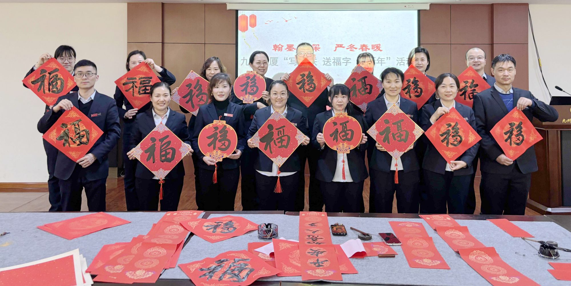 新春佳節(jié)來(lái)臨之際,為弘揚(yáng)中華民族優(yōu)秀傳統(tǒng)文化,豐富職工文化生活,1月10日下午,九州商業(yè)大廈黨總支聯(lián)合大廈工會(huì)分會(huì)、團(tuán)支部在七樓職工培訓(xùn)室組織開(kāi)展了“寫(xiě)春聯(lián) 送福字 迎新年”活動(dòng)。