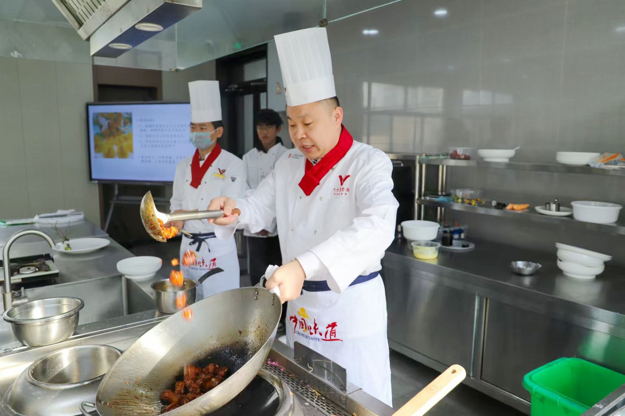 本次授課,魏茂旭精心挑選XO醬貴妃大連鮑、江雪話梅小排、金絲繡球鳳尾蝦三道菜品進(jìn)行講解。菜品選取常用食材,制作過程便于家庭制作。魏茂旭分別從食材選擇、切配技巧、烹飪火候、裝盤造型等方面進(jìn)行了詳細(xì)的講解和制作,將復(fù)雜的烹飪過程化解為一個(gè)個(gè)易于理解的小步驟。老師們分別對(duì)菜品進(jìn)行品嘗、做出評(píng)價(jià)。大家一致認(rèn)為,菜品符合春節(jié)喜慶團(tuán)圓氛圍。