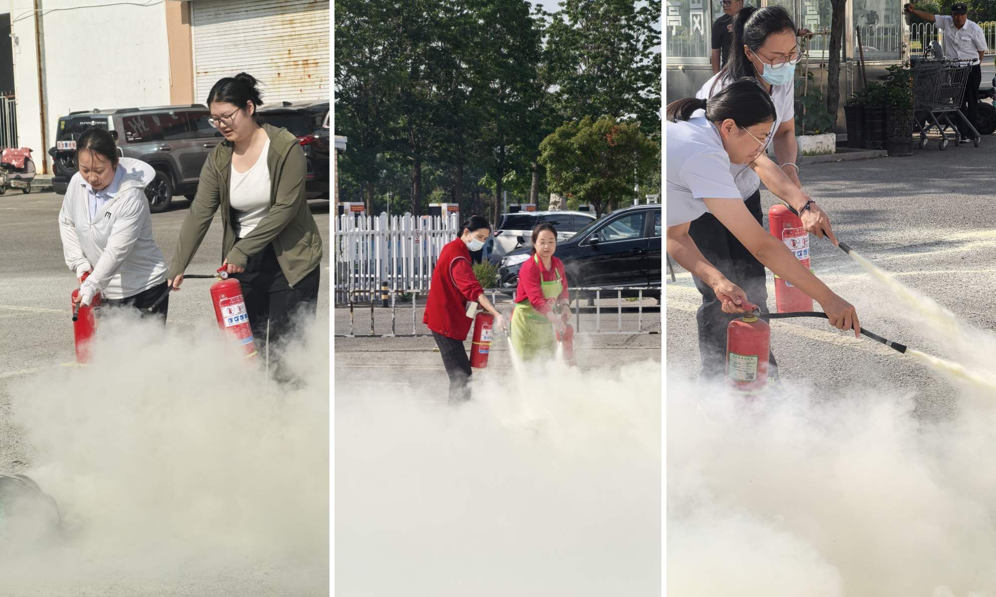 演練中,楊莊店安保部經(jīng)理郭磊通過“提、拔、握、壓”四字口訣,向大家詳細講解了滅火器的使用方法,讓員工快速掌握操作要點及技巧,隨后大家分組進行滅火器滅火實操演練。此外,通過模擬火災(zāi)場景,郭磊指導(dǎo)大家正確的疏散逃生方法,確保每一名員工在遇到突發(fā)險情時能迅速、有序撤離,保障人身安全。
