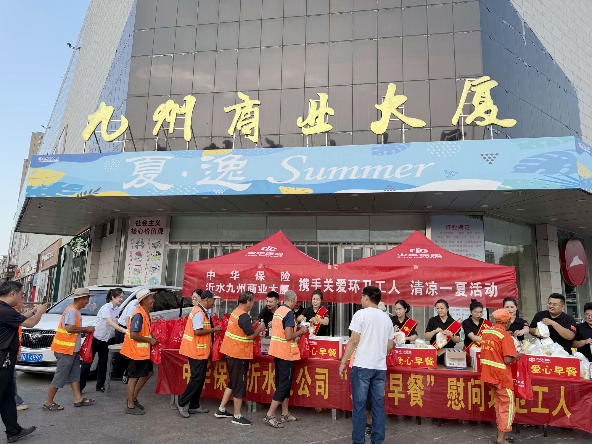 7月15日早上,九州商業(yè)大廈沂水門店攜手中華保險(xiǎn)公司,在長安店門前廣場(chǎng)聯(lián)合開展了“攜手關(guān)愛環(huán)衛(wèi)工人 清涼一夏”公益活動(dòng),為150余名一線環(huán)衛(wèi)工人發(fā)放早餐與清涼禮包,在炎炎夏日為城市的“美容師”送去清涼與關(guān)懷。