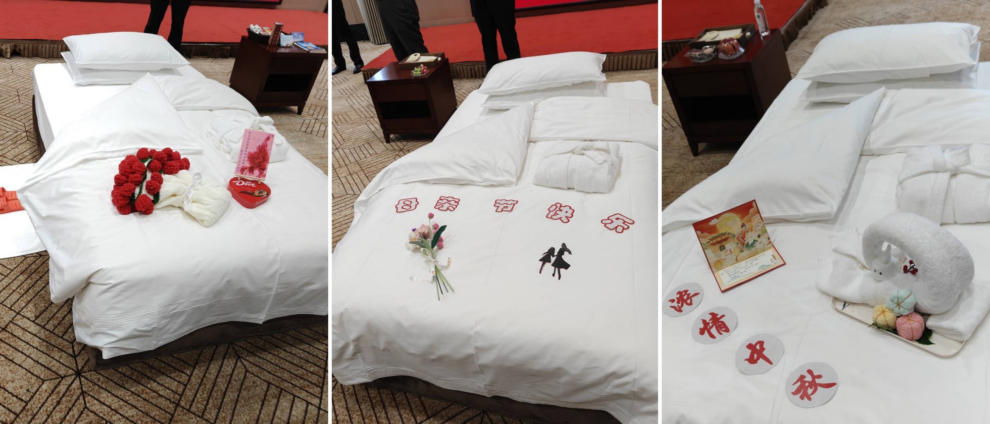 開夜床環(huán)節(jié)則更見巧思,選手們緊扣“客戶需求導向”,以精簡實用為核心,結合中秋節(jié)、國慶節(jié)、教師節(jié)等節(jié)點打造主題場景,給人眼前一亮的溫馨體驗。